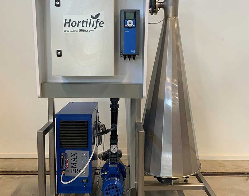 Установка Vortex очищает воздух от кислорода. Благодаря запатентованной вихревой технологии она воздействует на кислород, распыляя O2 в поливную воду и создавая нанопузырьки. При этом O2 остается во взвешенном состоянии даже при прохождении через несколько процессов системы полива.